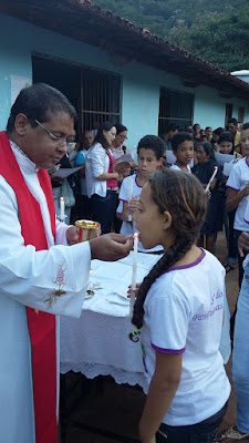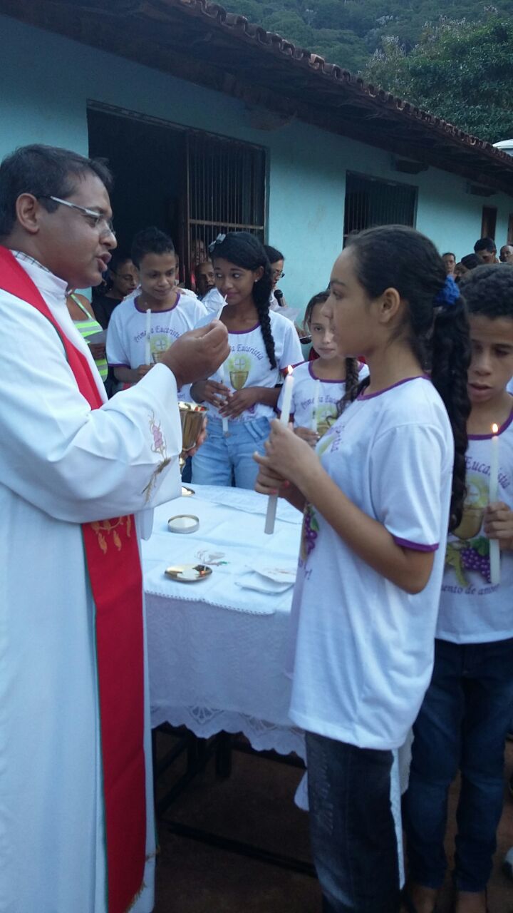 Aconteceu no dia 15 de maio, em Braúnas, na comunidade rural Córrego do Gerônimo a Santa Missa com a Primeira Eucaristia de 10 adolescentes.